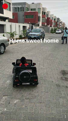 Tiwa Savage shared photos of her son, Jamal riding a mini G-Wagon round their estate. See more photos after the cut.