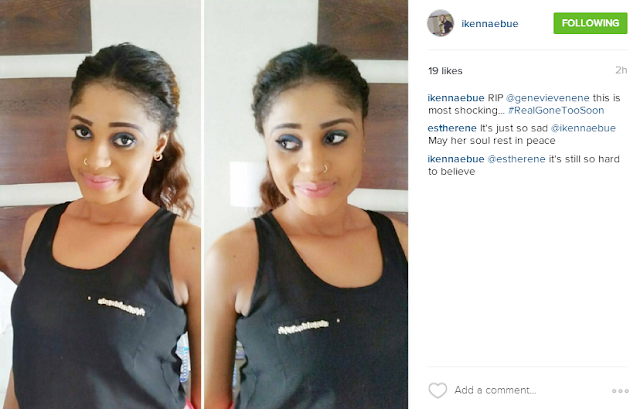 Nollywood Director and Screenwriter, Ike Nnaebue took to his Instagram page this morning to announce the passing of upcoming actress, Genevieve Nene pictured above. She died yesterday May 3rd in Lagos.