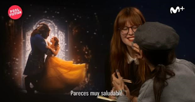 The star actress in Beauty And The Beast was at an interview with her co-star Dan Stevens to talk about the movie when she stopped Dan mid-sentence to help the presenter, Clara, take off an ink stain on her cheek.