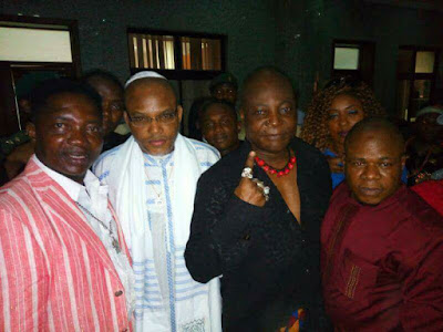 Charley boy was in court for one of the hearings in the case of Nnamdi Kanu, the Biafran agitator. The Area father got to pose with Nnamdi while prison officials looked on. He captioned the photo: “For Biafra” Of note is the fact that Nnamdi Kanu was dressed in the traditional Jewish fashion, as he did the last time, and Biafra supporters have said its his way of stating that he and other Biafra agitators are being persecuted like the Jews. As for the Area Father, he dressed simply in a black shirt while a string of red beads adorned his neck. Another photo after the cut…