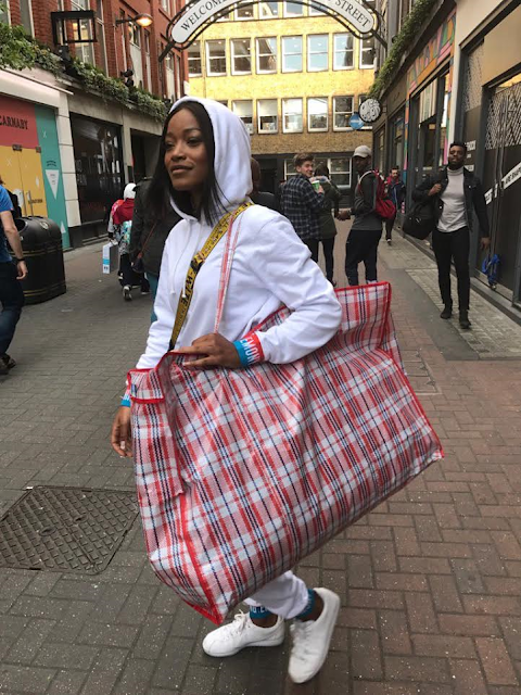 Keke Palmer steps out in London carrying ‘Ghana Must Go’
