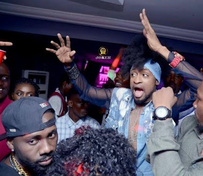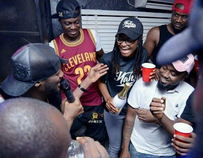 Ex-Big Brother Naija housemate, Marvis was over the weekend pictured clubbing at Joker Club in Benin with 2Baba, Sound Sultan Peter Okoye, Ice Prince and Denrele. See more photos after the cut..