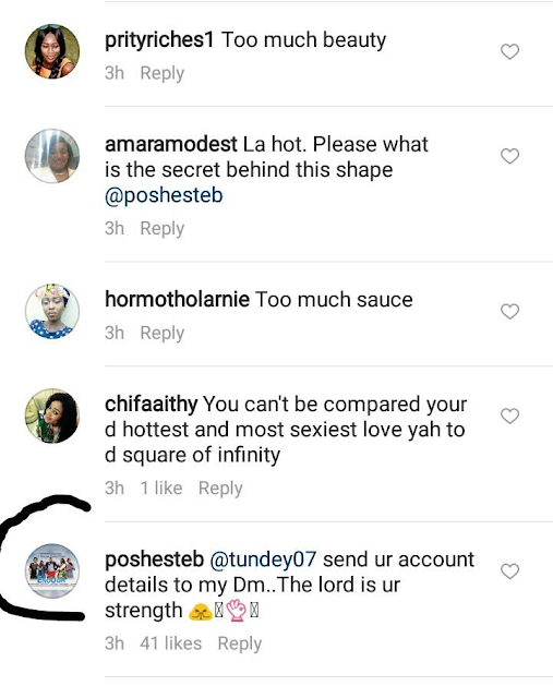 He reached out to Ebube Nwagbo in her comment section and she replied asking him to send his account details.