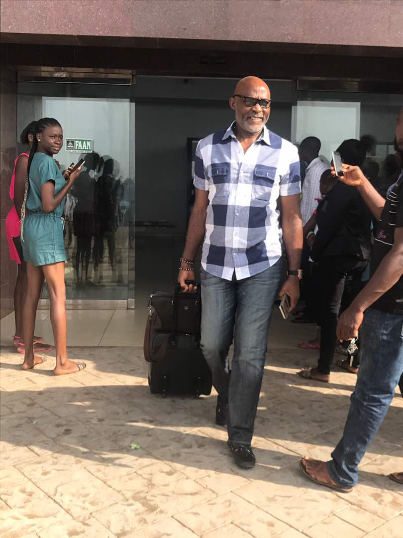 Veteran actor Richard Mofe Damijo was passing through the airport yesterday when a lady in green spotted him and couldn’t take her eyes off him. Someone took the photos and shared on Twitter and Nigerians had a filled day reacting to the photos. See that after the cut…
