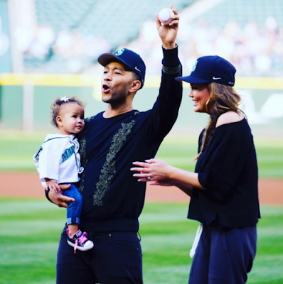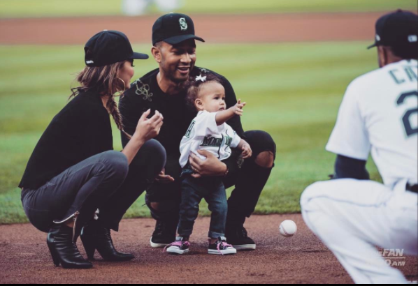 Singer. John Legend, his wife and their daughter look amazing in these new photos taken at Seattle Mariners stadium. Baby Luna was also rocking the team’s jersey. More pictures after the cut…